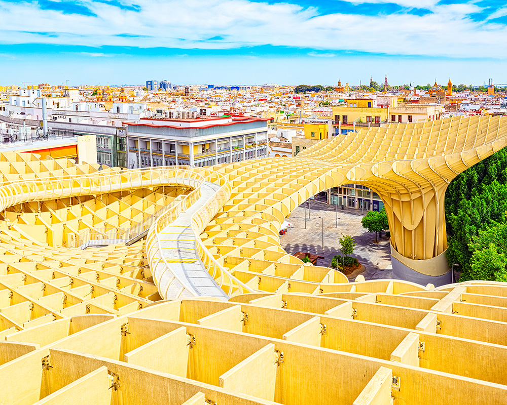 Las Setas de Sevilla, también conocidas como Metropol Parasol o Setas de la Encarnación, son unas estructuras de madera con dos columnas de hormigón que albergan los ascensores de acceso al mirador y que está ubicada en la céntrica plaza de la Encarnación. Tiene unas dimensiones de 150 x 70 m y una altura aproximada de 26 m, y fue el proyecto ganador del concurso abierto por el Ayuntamiento de Sevilla para llevar a cabo la rehabilitación de la plaza en la que se ubica; su diseñador fue el arquitecto natural de Stuttgart, Jürgen Mayer.